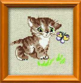 Набор для вышивания крестом Котенок с бабочкой (арт. Р-1049) ТМ Риолис содержит шерстяные нитки, канву (14 Rustico Aida Zweigart лён), иглу и подробную инструкцию.
