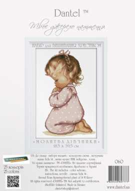 Набор для вышивания крестом Молитва девочки ТМ Dantel содержит мулине ПНК им. Кирова, канву Aida 14, символьную схему, иглу и инструкцию.