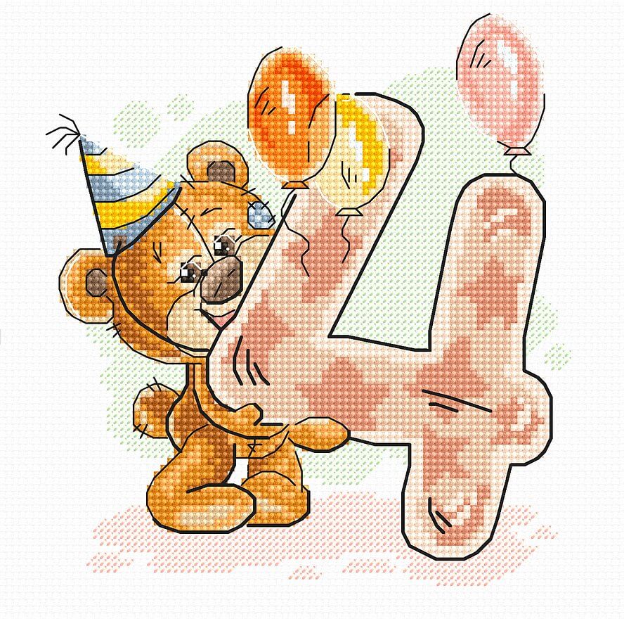 Набор для вышивки счетным крестом Номер „4” (B1232) компании Luca-S содержит изображение готовой работы, схему, мулине Anchor, канву Zweigart Aida 16 ct., иглу и инструкцию на русском языке.
