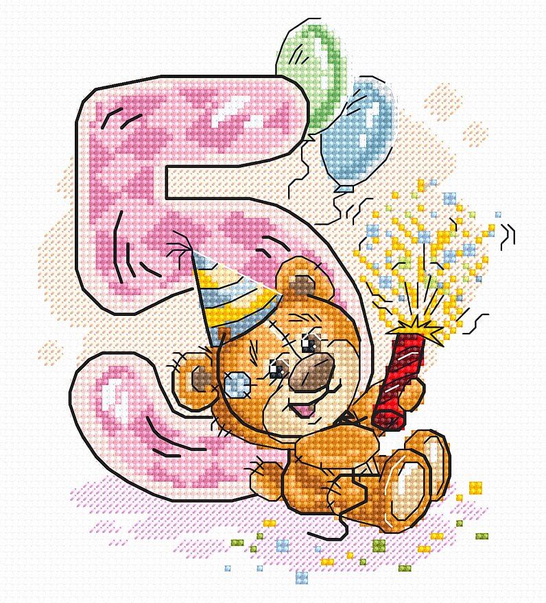Набор для вышивки счетным крестом Номер „5” (B1233) компании Luca-S содержит изображение готовой работы, схему, мулине Anchor, канву Zweigart Aida 16 ct., иглу и инструкцию на русском языке.