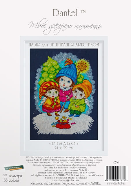 Набор для вышивания крестом Рождество ТМ Dantel содержит мулине ПНК им. Кирова, канву Aida 14, символьную схему, иглу и инструкцию.