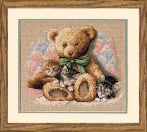 Набор для вышивки крестом Тедди и котята, ТМ Dimensions, арт. 1058950, 36x30см
