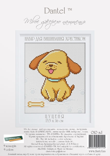 Набор для вышивки крестом Щенок, 13.5х16см, D-010 SD, Dantel