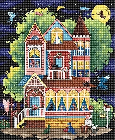 Набор для вышивки счетным крестом Fairy tale house, Сказочный дом (LETI-937) компании Luca-S содержит изображение готовой работы, схему, мулине Anchor, канву Zweigart Aida 16ct., иглу и инструкцию на русском языке.