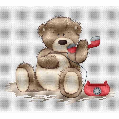 Набор для вышивания Медвежонок Бруно и телефон, 19*15см, B1009, Luca-S