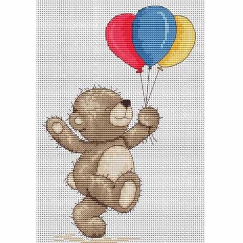 Набор для вышивания Медвежонок Бруно с шариками, 12.5*19.5см, B1097, Luca-S