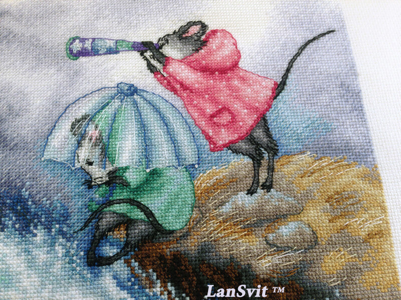 Набор для вышивания Мимимышки: На краю земли ТМ ЛанСвіт содержит все необходимые материалы: канва Zweigart Aida 16 с обработанными краями, мулине DMC, игла John James, символьная схема подробная инструкция и фото готовой работы.