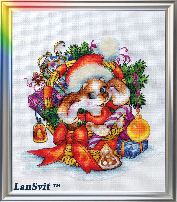 Набор для вышивания Новогодний щенок ТМ ЛанСвіт содержит все необходимые материалы: канва Zweigart Aida 16 с обработанными краями, мулине DMC, игла John James, символьная схема подробная инструкция и фото готовой работы.