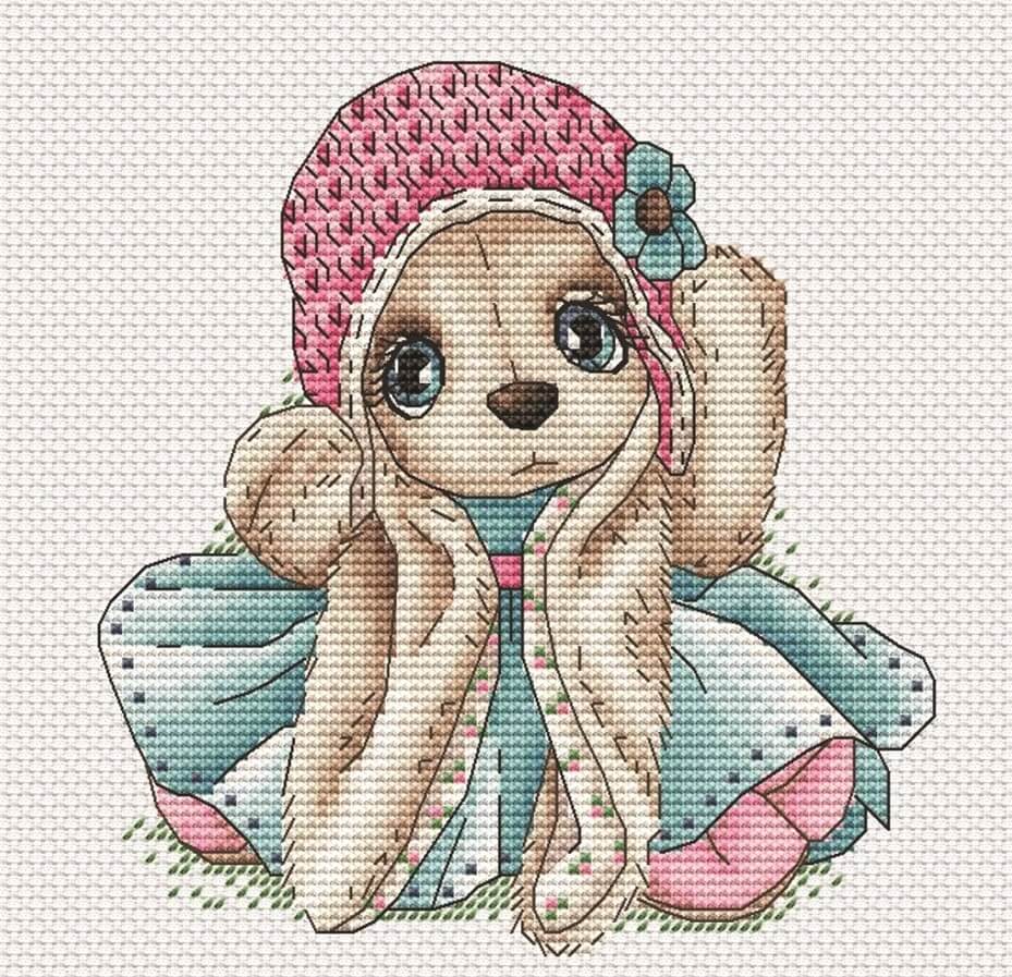 Набор для вышивки крестом Зайка в бирюзовом платье, арт. З003-SA, ТМ SA-stitch комплектуется белой канвой Zweigart Aida 14 или Linda 27 на выбор (укажите в комментариях при оформлении заказа), мулине DMC, символьной схемой и иглой.