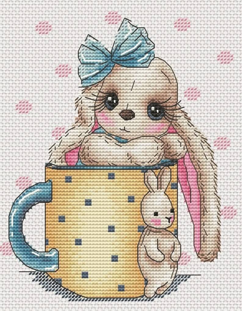 Набор для вышивки крестом Зайка в чашке, арт. З021-SA, ТМ SA-stitch комплектуется белой канвой Zweigart Aida 14 или Linda 27 на выбор (укажите в комментариях при оформлении заказа), мулине DMC, символьной схемой и иглой.