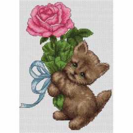 Набор для вышивки Котёнок с розой, 14*19см, B194, Luca-S