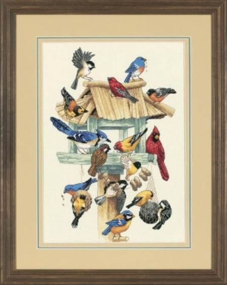 Комплектация набора для вышивания крестом Безумный пир, ТМ Dimensions: инструкция, цветная символьная схема, канва Aida 18 (айвори), хлопковое мулине Dimensions - 29 цветов и игла.