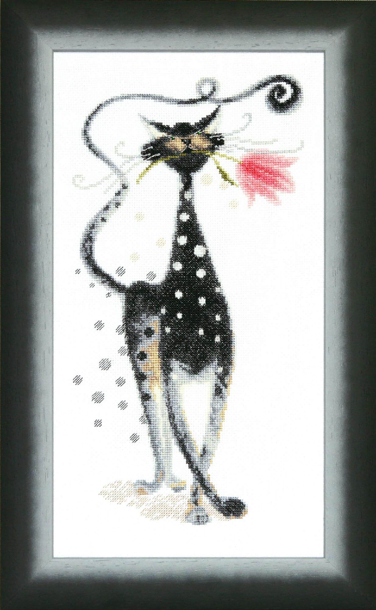 Набор для вышивания Кот-ухажер содержит подробную инструкцию вместе с цветной символьной схемой, канву Aida 14, нитки мулине Madeira - 18 цв., бисер Preciosa - 1 цвет и иглу. Размер вышивки 20х38см.
