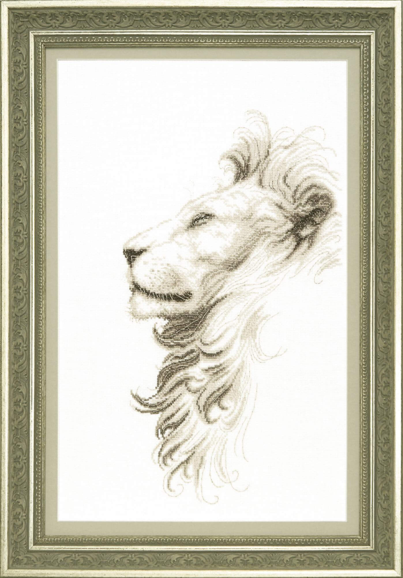 Набор для вышивания Лев содержит подробную инструкцию вместе с цветной символьной схемой, канву Aida 16, нитки мулине Madeira - 5 цв. и иглу. Размер вышивки 25х40см.
