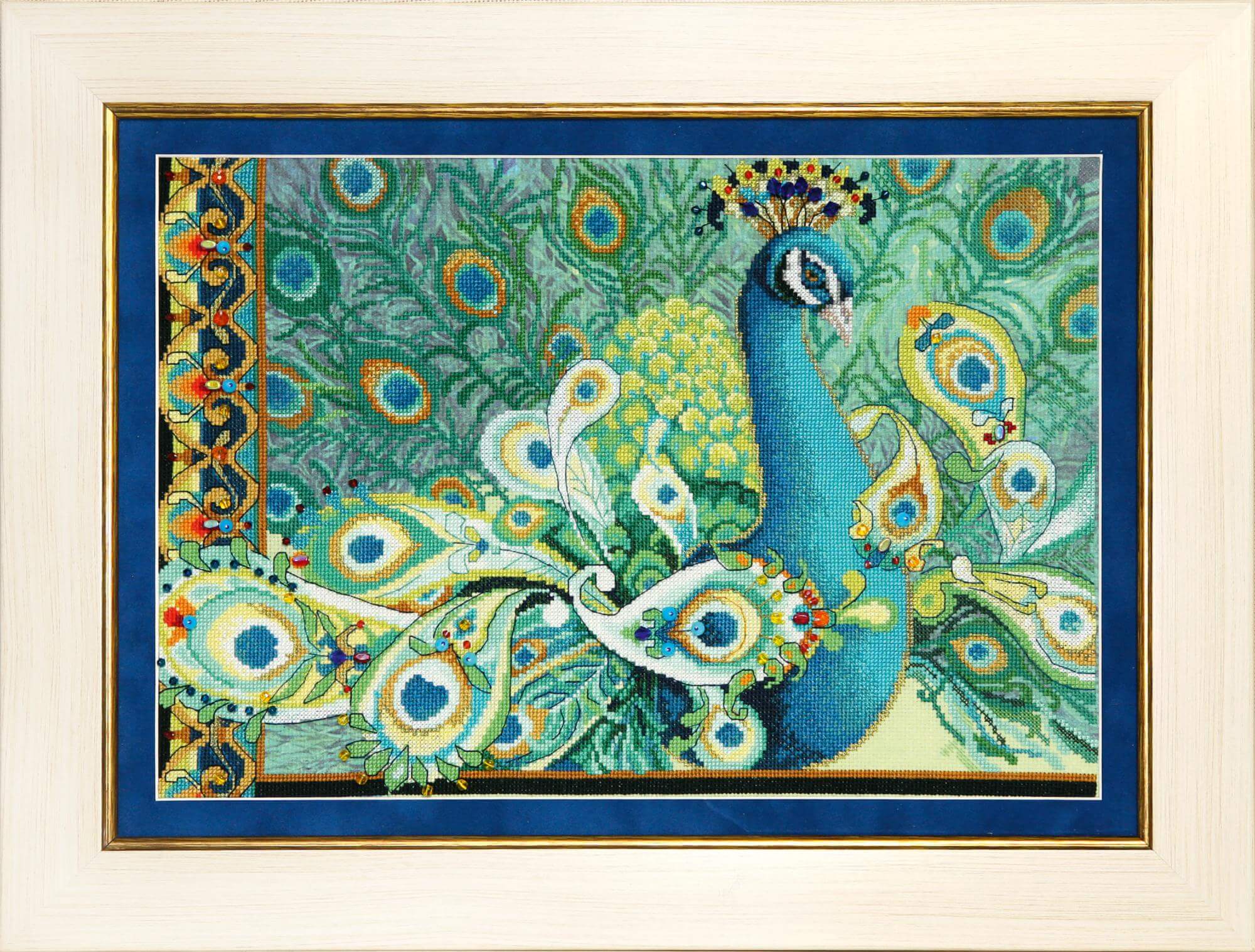 Набор для вышивания Птица индиго содержит подробную инструкцию вместе с цветной символьной схемой, канву с фоновым рисунком, нитки мулине Madeira - 28 цв., бисер Preciosa - 1 цвет, бусины Crystal Art - 8 цв. и иглы. Размер вышивки 36.5х25см.
