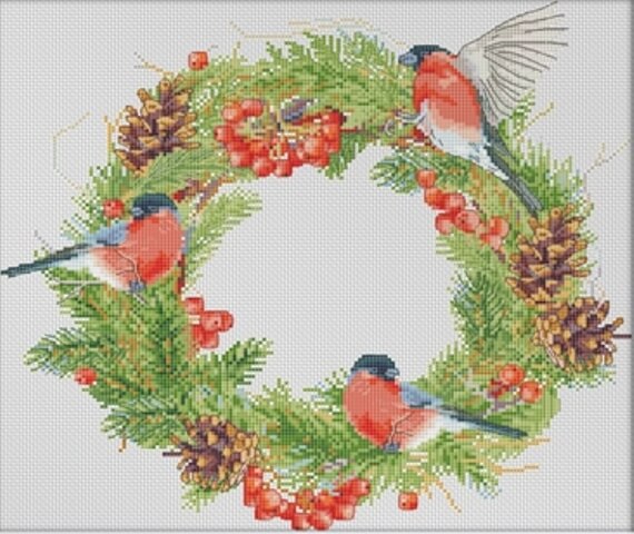Набор для вышивки крестом Снегири, 27х25см, D-135, Dantel