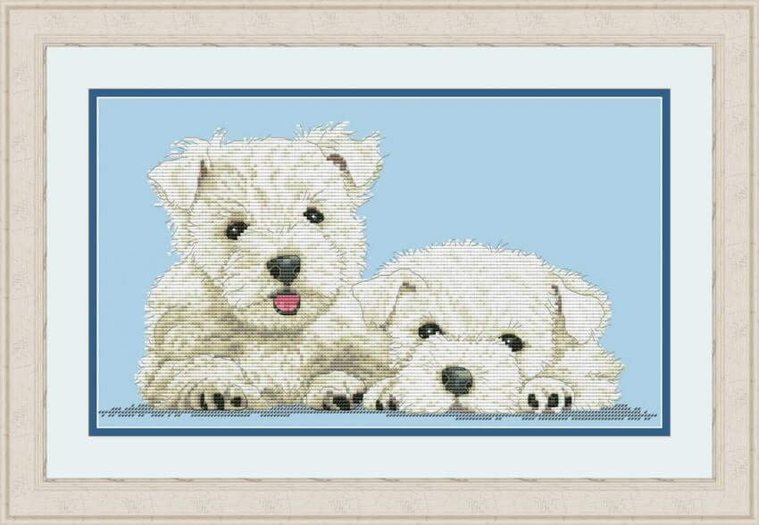 Набор для вышивки крестом Терьеры, VN-152, ТМ OLanTA (Картины Бисером) содержит канву Aida 14, мулине Peri, иглу и схему для вышивки крестом.
