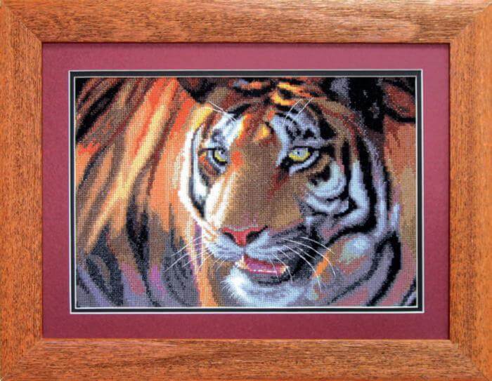 В набор для вышивки крестом Тигр (размер вышивки 31x21см), арт. 469, ТМ Чарівна мить входит канва Aida 14, мулине ПНК им. Кирова, игла, цветная символьная схема и инструкция.