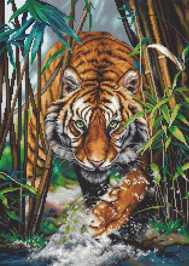 Набор для вышивки счетным крестом Тигр (B2406) компании Luca-S Gold содержит изображение готовой работы, схему, мулине Anchor, канву Zweigart Aida 16 ct., иглу и инструкцию на русском языке.