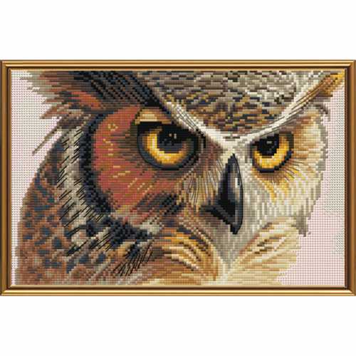 Набор для вышивки счетным крестом Филин компании Новая Слобода состоит из ниток мулине Palmira 180, белой канвы Aida 16, иглы для вышивания, цветной схемы и подробной инструкции.