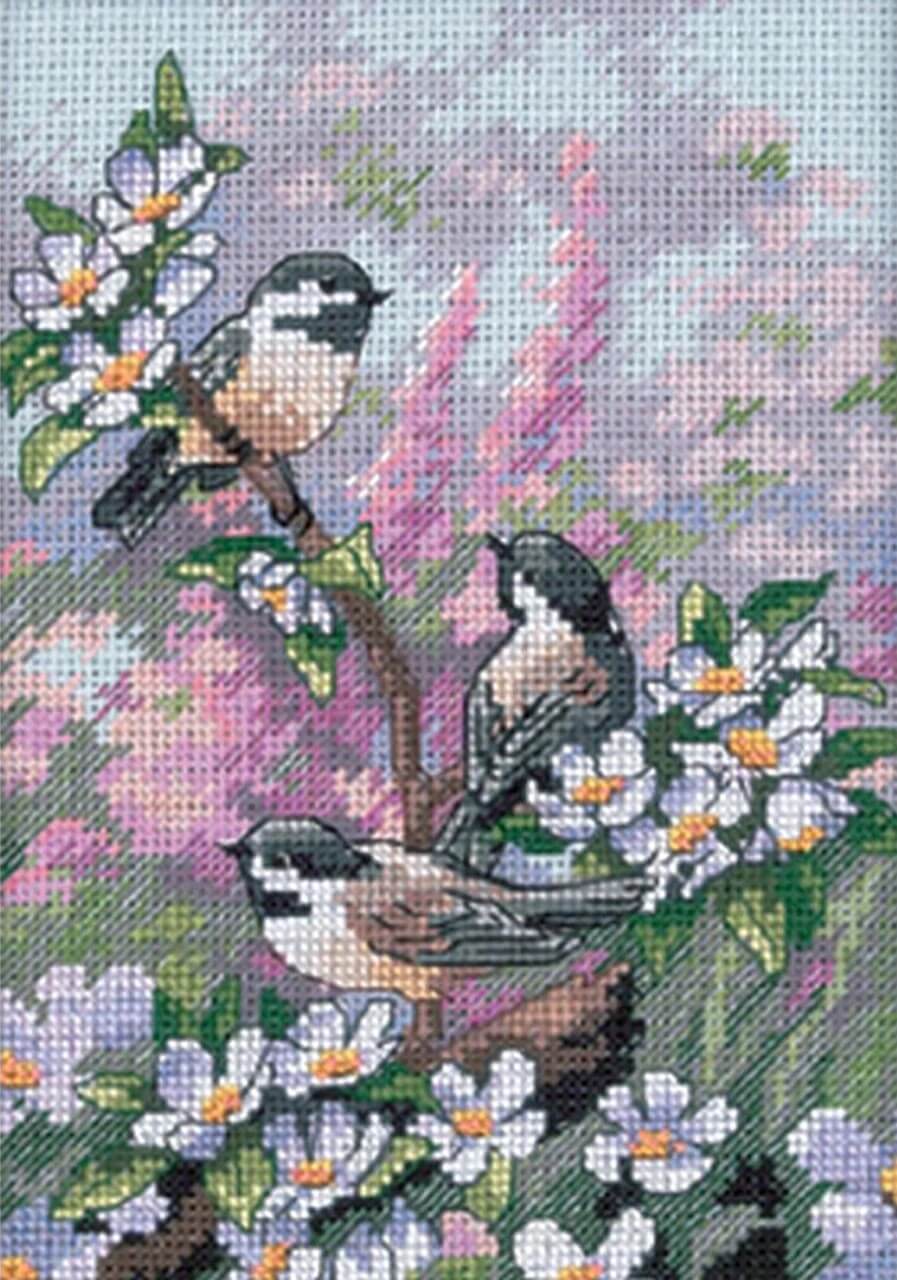 Набор для вышивания крестом Chickadees in Spring, Синички весной, Dimensions, арт. 6884, 13x18см
