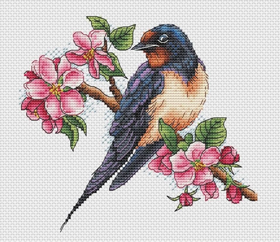Набор для вышивки крестом Ласточка, арт. П002-SA, ТМ SA-stitch комплектуется белой канвой Zweigart Aida 14 или Linda 27 на выбор (укажите в комментариях при оформлении заказа), мулине DMC, символьной схемой и иглой.