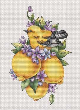 Набор для вышивки крестом Птичка с лимонами, арт. П005-SA, ТМ SA-stitch комплектуется белой канвой Zweigart Aida 14 или Linda 27 на выбор (укажите в комментариях при оформлении заказа), мулине DMC, символьной схемой и иглой.