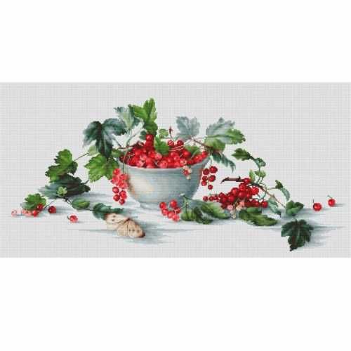 Набор для вышивки крестом Красная смородина компании Luca-S содержит изображение готовой работы, схему, мулине Anchor, канву Zweigart, иглу и инструкцию на русском языке.