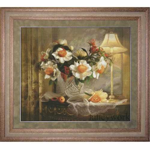 Набор для вышивки крестом Вечерний натюрморт состоит из немецкой канвы Zweigart Аида 16, мулине DMC - 68 цветов, иглы, символьной схемы и каталога наборов для вышивания харьковского производителя ТМ Юнона. По фотокартине Луизы Гельтс Starlight.