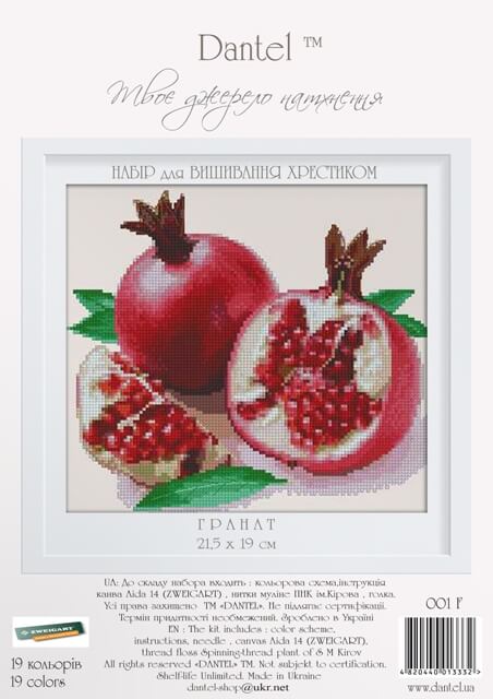 Набор для вышивки крестом Гранат, 21.5х19см, D-001 Ф, Dantel