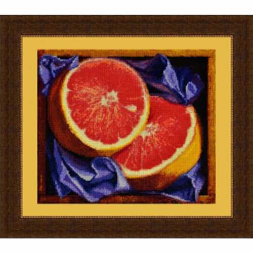 Набор для вышивки крестом Грейпфрут ТМ OLanTA (Картины Бисером) содержит канву Aida Zweigart 16, мулине Peri, иглу и схему для вышивки крестом.