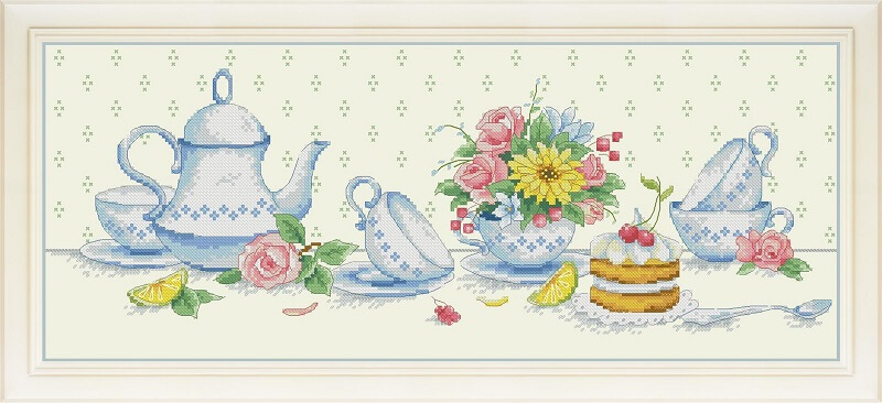 Набор для вышивки крестом К чаю, VN-071, ТМ OLanTA (Картины Бисером) содержит канву Aida Zweigart 16, мулине DMC, иглу и схему для вышивки крестом.