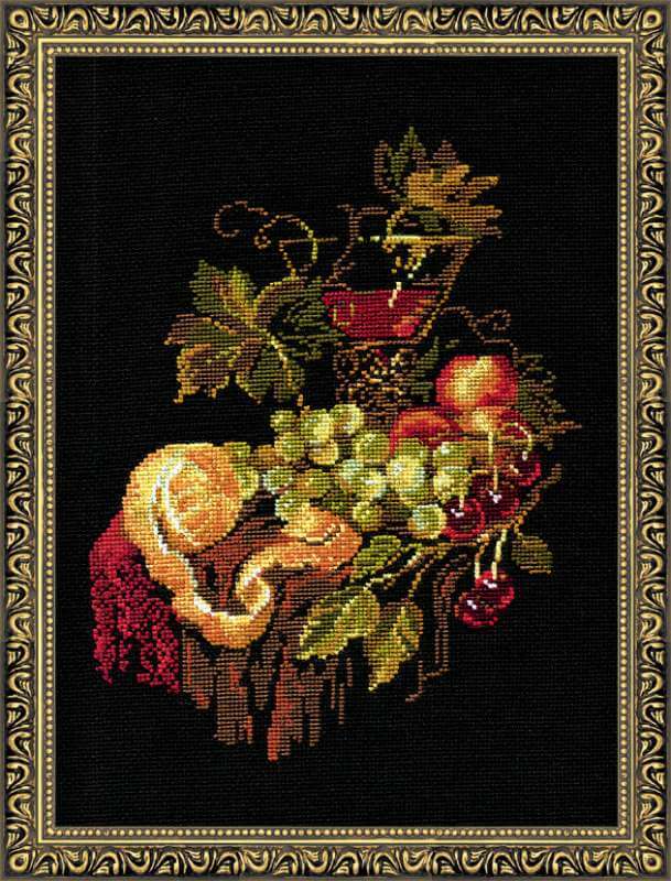Набор для вышивания крестом Натюрморт с апельсином (арт. Р-0828) ТМ Риолис содержит шерстяные нитки, канву (15 Aida Zweigart черная), иглу и подробную инструкцию.