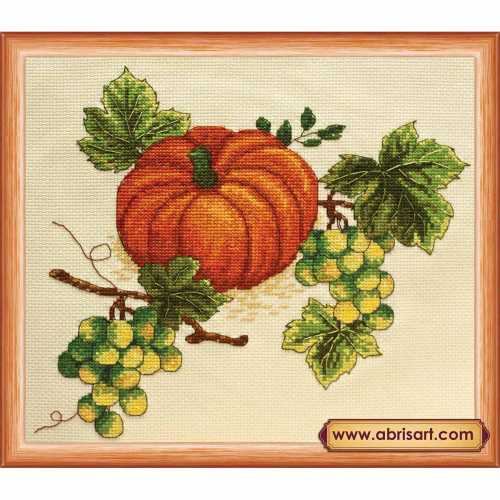 Набор для вышивки крестом Осенний натюрморт (AH-013) ТМ Абрис Арт содержит качественные хлопковые канву и мулине, произведенные в Европе, иглу, фото готовой картины, цветную символьную схему и инструкцию.