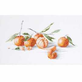 Набор для вышивки счетным крестом Мандарины (B2255) компании Luca-S содержит изображение готовой работы, схему, мулине Anchor, канву Zweigart Aida 18, иглу и инструкцию на русском языке.