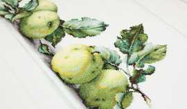 Набор для вышивки крестом Натюрморт с яблоками (арт. B2259) молдавского производителя Luca-S содержит фото готовой работы, схему, высококачественное английское мулине Anchor, немецкую канву премиум класса Zweigart Aida 18/100, иглу и инструкцию на русском языке.