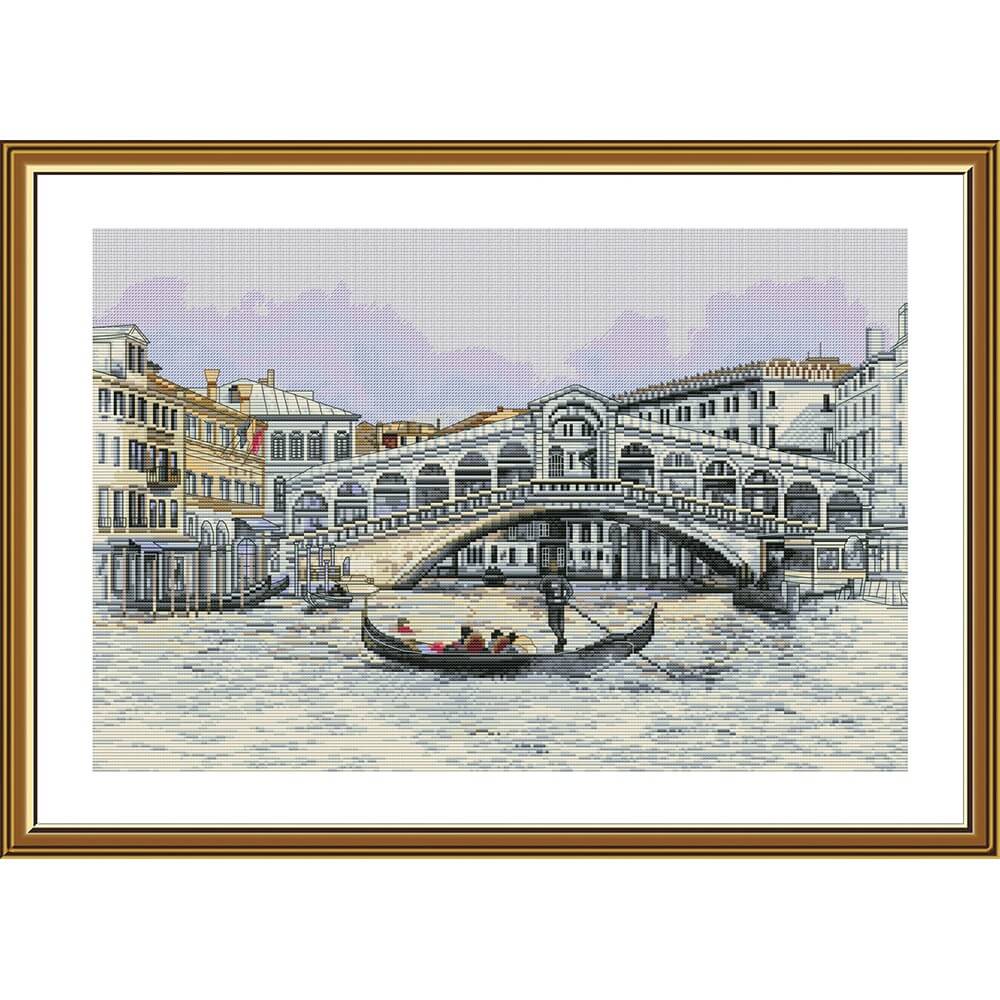 Набор для вышивки счетным крестом Венецианский канал компании Новая Слобода состоит из ниток мулине AVRORA 120, белой канвы Aida 16, иглы для вышивания, цветной схемы и подробной инструкции.