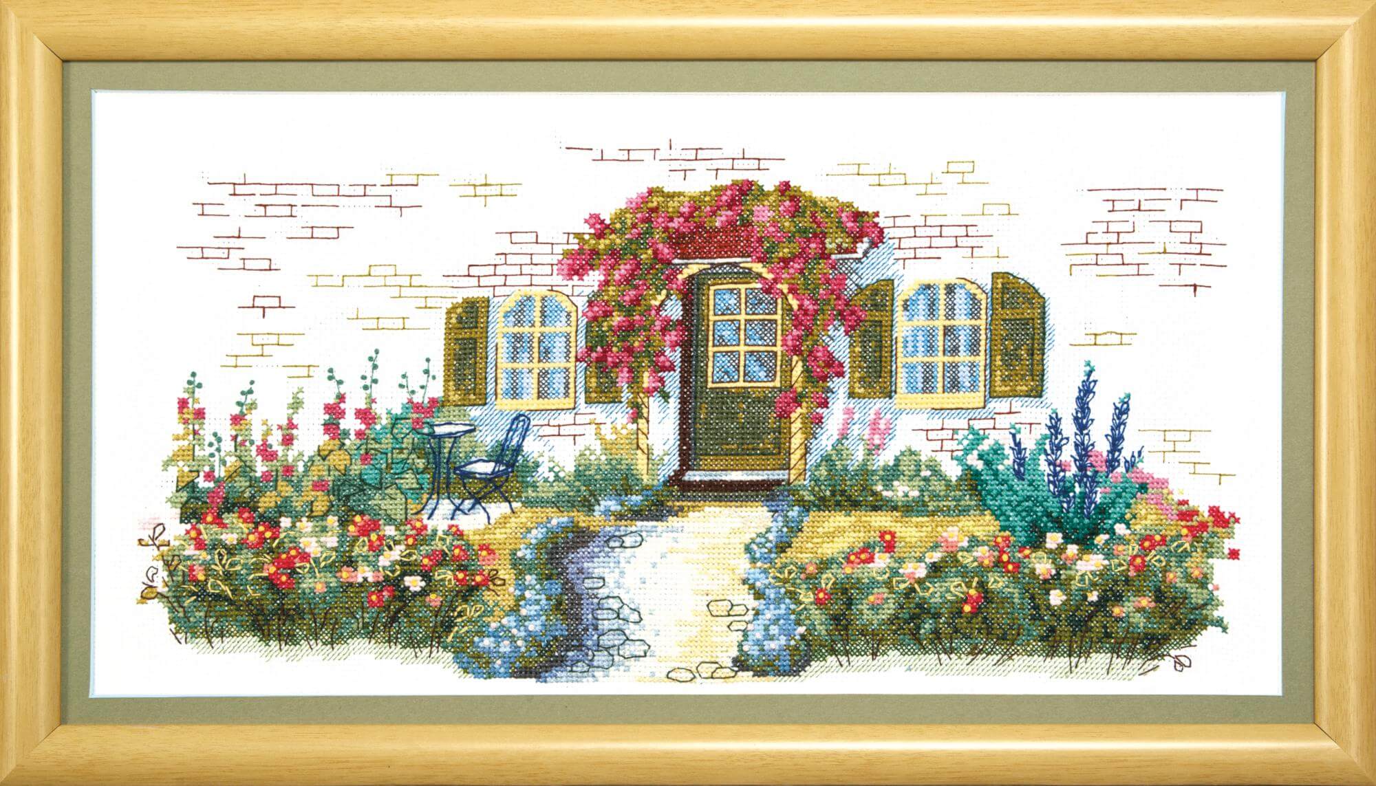 Набор для вышивания крестом Дачный уют содержит подробную инструкцию и цветную символьную схему, канву Aida 14, х/б мулине Bestex - 29 цветов и иглу.