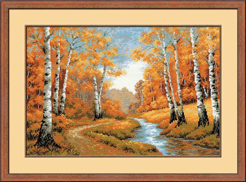 Набор для вышивания крестом Золотая роща (арт. Р-1155) ТМ Риолис содержит шерстяные нитки, канву (10 Aida Zweigart белая), иглу и подробную инструкцию.