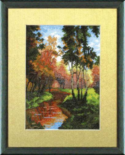 В набор для вышивки крестом Золотая осень (размер вышивки 14.5x20.5см), арт. 515, ТМ Чарівна мить входит канва Aida 16, мулине ПНК им. Кирова, игла, цветная символьная схема и инструкция.