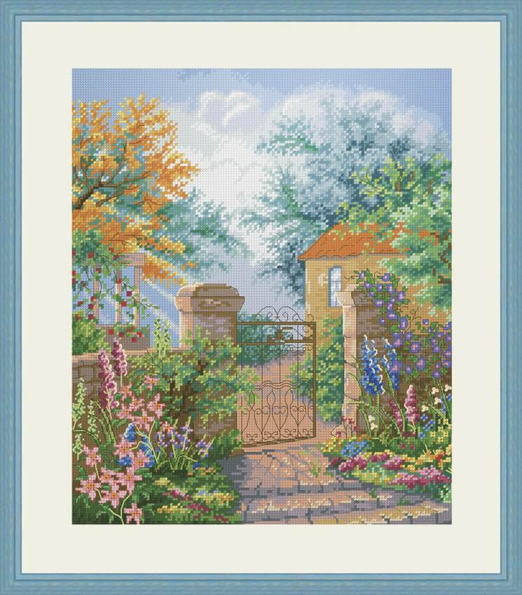 Набор для вышивки крестом Калитка в сад, VN-135, ТМ OLanTA (Картины Бисером) содержит канву Zweigart Aida 16 (белая), мулине Peri, иглу и схему для вышивки крестом.