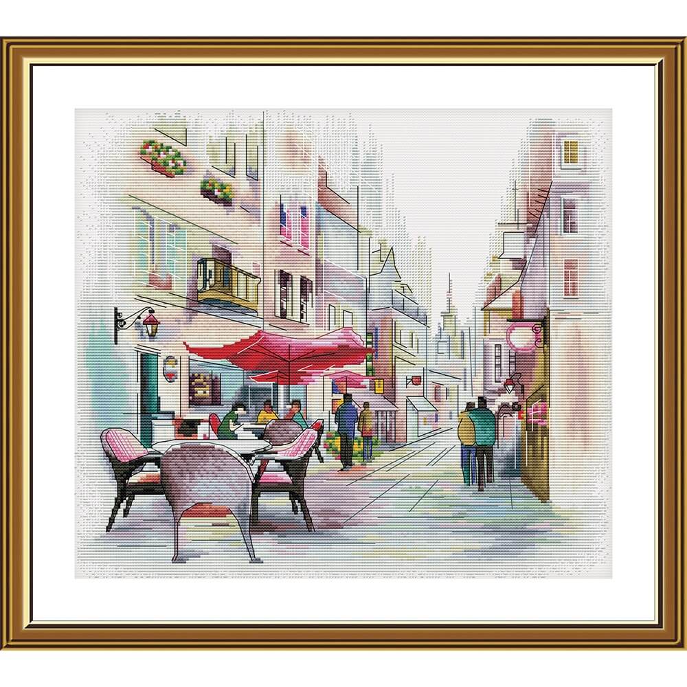 Набор для вышивки счетным крестом Кафе у дома компании Новая Слобода состоит из ниток мулине Palmira 180, белой канвы Aida 14, иглы для вышивания, цветной схемы и подробной инструкции.