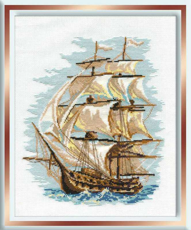 Набор для вышивания крестом Корабль (арт. Р-0479) ТМ Риолис содержит шерстяные нитки, канву (15 Aida Zweigart белая), иглу и подробную инструкцию.