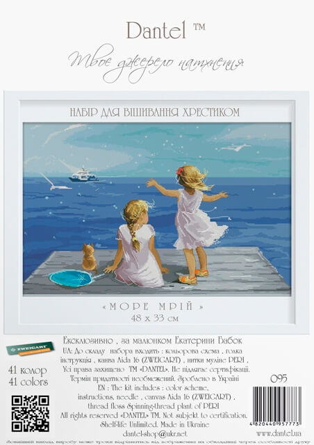 Набор для вышивания крестом Море надежд ТМ Dantel содержит мулине DMC, канву Aida 16, символьную схему, иглу и инструкцию.