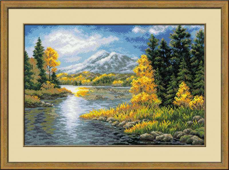 Набор для вышивки крестом Озеро в горах, арт. Р-1235, 60*40см, Риолис