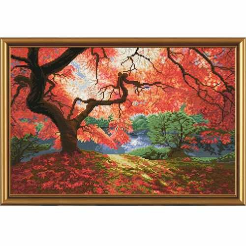 Набор для вышивки крестом Осенние лучи компании Новая Слобода состоит из канвы Aida 16, ниток мулине Palmira 180, иглы для вышивания, цветной схемы и подробной инструкции.