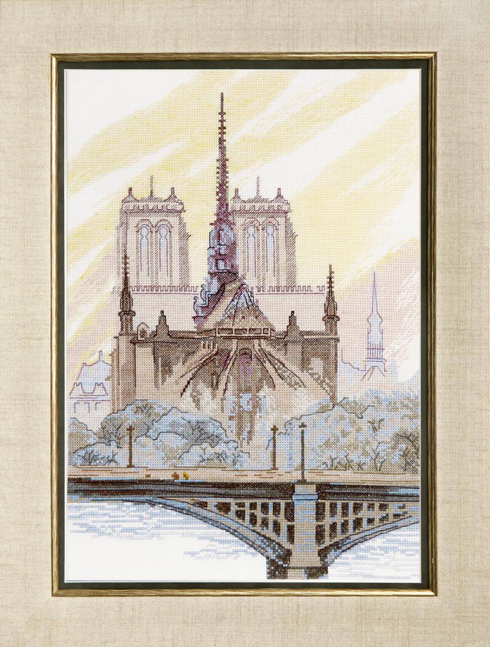 Набор для вышивания крестом Париж. Нотр-Дам де Пари содержит подробную инструкцию и цветную символьную схему, канву Aida 14, х/б мулине Bestex - 18 цветов и иглу.