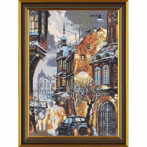 Набор для вышивки счетным крестом Снег в городе компании Новая Слобода состоит из ниток мулине AVRORA 120, белой канвы Aida 16, иглы для вышивания, цветной схемы и подробной инструкции.