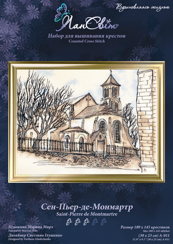 Набор для вышивания Сен-Пьер-де-Монмартр ТМ ЛанСвіт содержит все необходимые материалы: канва Zweigart Murano 32 ct. с обработанными краями, мулине DMC, игла John James, символьная схема подробная инструкция и фото готовой работы.