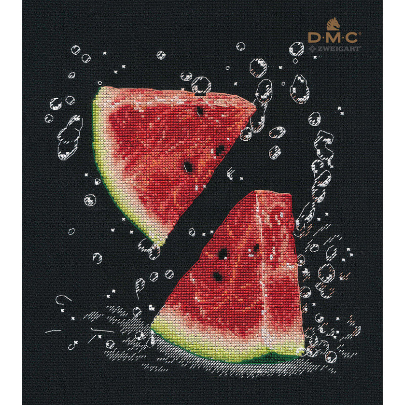 Набор Арбузный фреш (артикул 1361-O) ТМ Овен содержит все необходимые материалы для вышивания крестиком: канву Zweigart Aida 14 ct., мулине DMC, иглу, символьную схему и инструкцию.